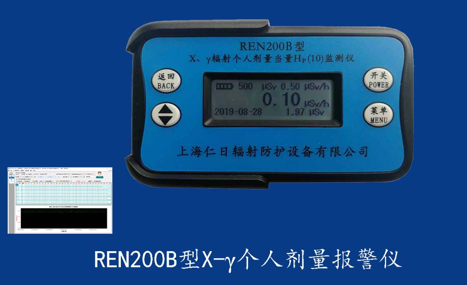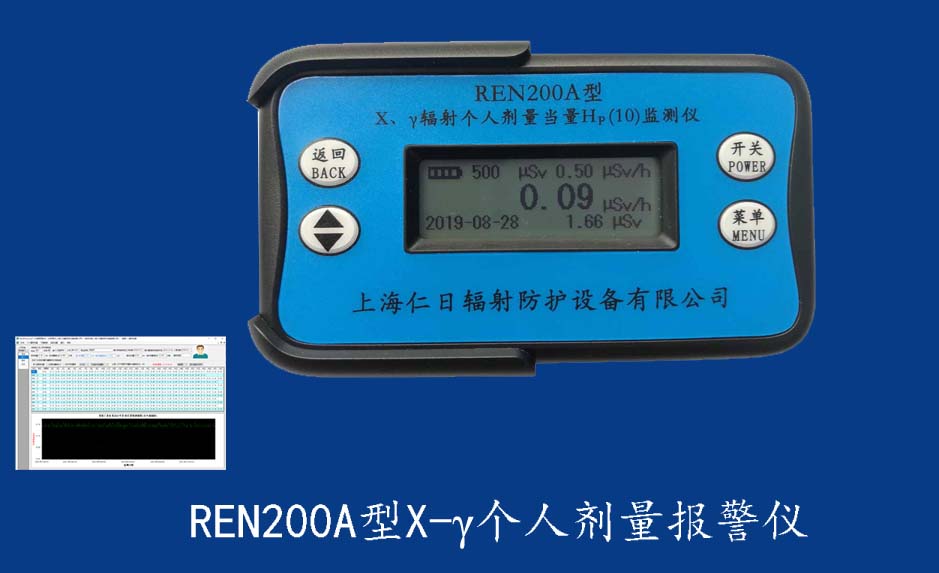 REN200型X、γ個人劑量報警儀(又叫X、γ輻射個人劑量當(dāng)量HP(10)監(jiān)測儀)內(nèi)置高靈敏度蓋格計數(shù)管為探測器,主要用來監(jiān)測各種放射性工作場所的X、γ以及硬β射線的輻射,具有響應(yīng)快,測量范圍寬的特點。能顯示工作場所的劑量當(dāng)量率和累積劑量,更換電池時,日期及累積數(shù)據(jù)能永久保存?蛇x配RenRiPersonal個人劑量管理軟件,該軟件可存儲多個人的歷史數(shù)據(jù),能記錄日累積、月累積、年累積、輻照時長、計算平均劑量率、扣除或不扣除本底輻射,且以文字和圖譜的方式展現(xiàn)數(shù)據(jù)。廣泛應(yīng)用于核電站、加速器、鋼鐵、化工、同位素應(yīng)用、醫(yī)院、工業(yè)X、γ無損探傷、放射醫(yī)療、鈷源治療、γ輻照、放射性實驗室、核設(shè)施周圍環(huán)境監(jiān)測